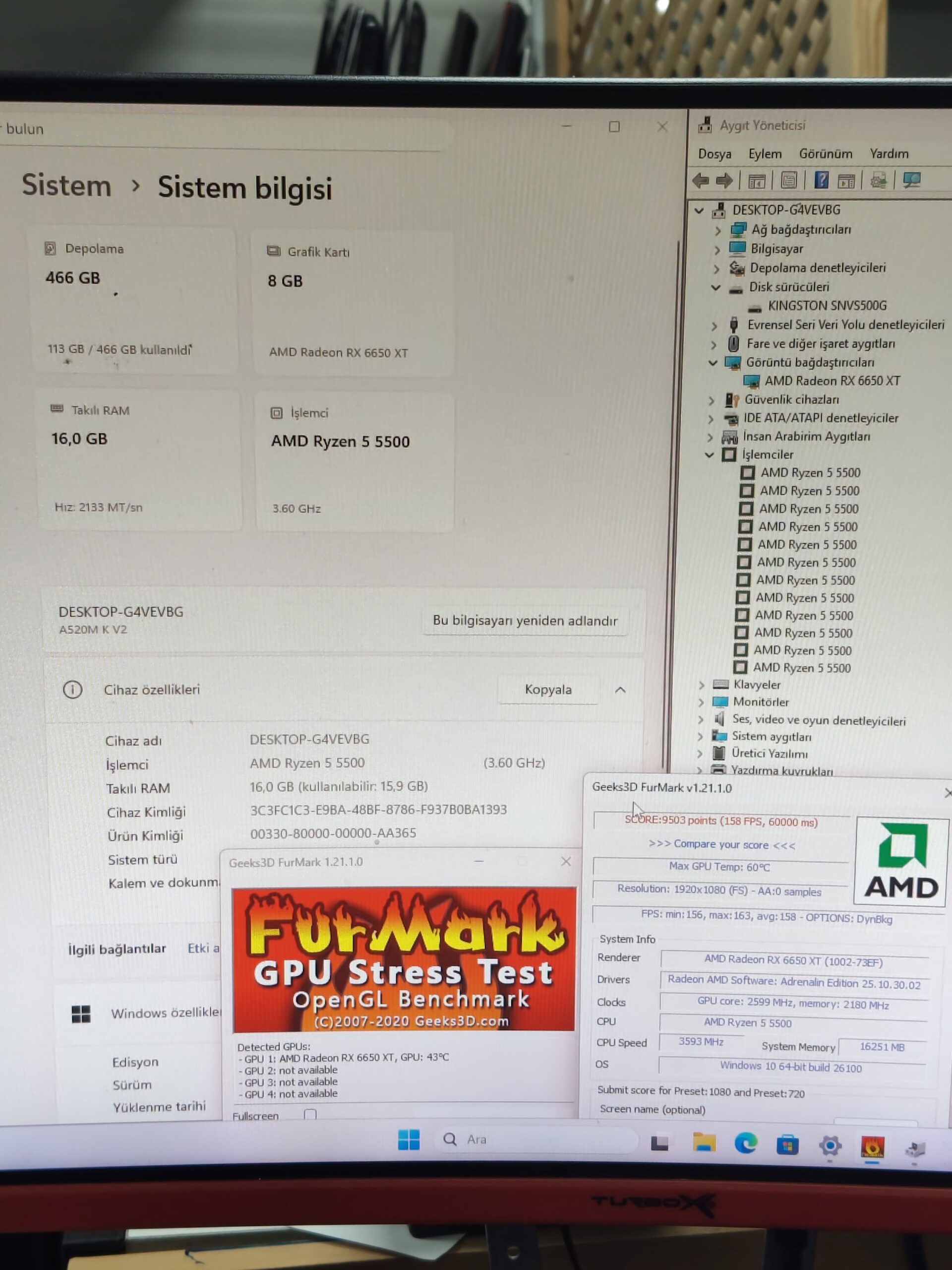 8GB RX 6650XT RYZEN5 5500 16GB RAM 500GB M2SSD 600W KASA