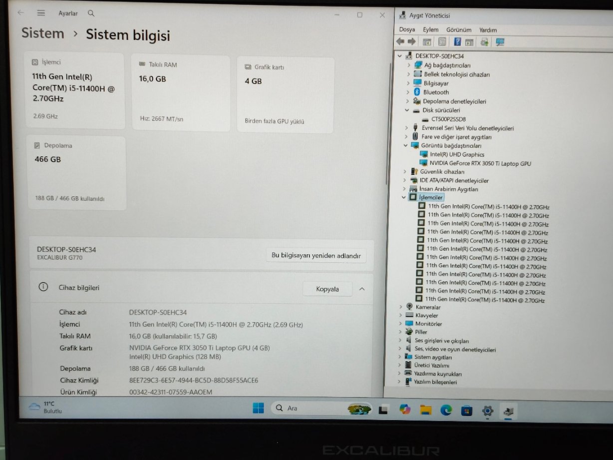• İ5 11400H TURBO 4.10 GHZ İŞLEMCİ