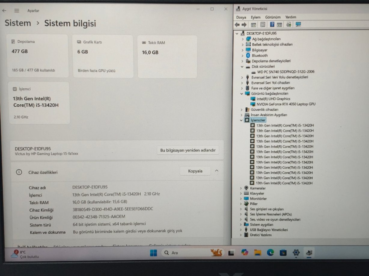 HP VİCTUS İ5 13420H 16GB RAM 6GB RTX 4050 GARANTİLİ OYUNCU LAPTOP